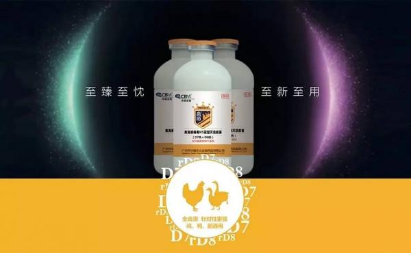 禽流感病毒H5亞型滅活疫苗(D7株+rD8株)“禽盾”適用于水禽和家禽,是針對多分支的H5亞型禽流感的二價滅活疫苗,于2017年3月獲得農(nóng)業(yè)部新獸藥注冊證書【(2017)新獸藥證字10號】。該產(chǎn)品選用D7株和rD8株作為疫苗毒株,其中D7株是華南農(nóng)業(yè)大學(xué)廖明教授團(tuán)隊(duì)于2007年廣東發(fā)病鴨群分離,為H5和H9天然重組而產(chǎn)生的天然野毒株,對不同時期的Clade2.3.2均有良好的保護(hù)力,對水禽保護(hù)效果良好;rD8株為重組病毒,是以D7株為骨架,選用目前流行的H5N1亞型禽流感病毒CG1株(Clade 2.3.4.4)作為HA基因供體利用反向遺傳技術(shù)獲得,為全禽源禽流感病毒,具有高效的雞胚增殖能力,以及良好的家禽免疫良性。針對目前國內(nèi)流行的Clade 2.3.4.4和Clade 2.3.2.1分支的H5亞型禽流感病毒,產(chǎn)品的抗原性可以實(shí)現(xiàn)全覆蓋,具有良好的交叉保護(hù)作用,對雞和水禽均有良好的安全性和免疫效力。經(jīng)過多次臨床試驗(yàn)證明,禽流感病毒H5亞型滅活疫苗(D7株+rD8株)可有效預(yù)防家禽感染H5亞型禽流感。