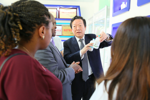 會(huì)議的下半部分,雙方進(jìn)行合作的探討、產(chǎn)品的介紹、生產(chǎn)車(chē)間的參觀(guān)。肯尼亞內(nèi)羅畢大學(xué)團(tuán)隊(duì)對(duì)華南生物給予高度的評(píng)價(jià)。