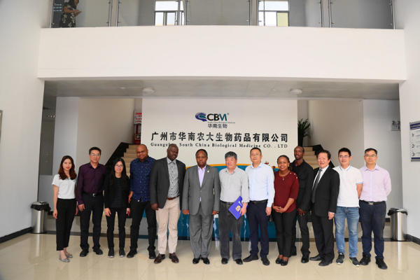 11月8日,肯尼亞內(nèi)羅畢大學(xué)團(tuán)隊(duì)在廣州謝諾中非投資管理有限公司魏曉林執(zhí)行總裁的陪同下到廣州市華南農(nóng)大生物藥品有限公司(以下簡(jiǎn)稱(chēng)華南生物)進(jìn)行參觀(guān)交流。
