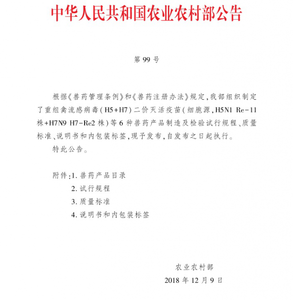 信息來源:中華人民共和國農業農村部公告 第99號http://www.moa.gov.cn/govpublic/SYJ/201812/t20181213_6164848.htm