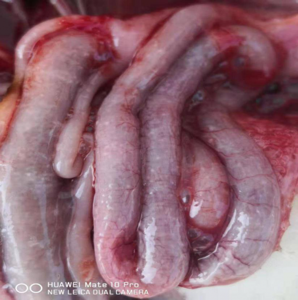 摘要:2019年3月初,江蘇省某27日齡、5000只規(guī)模的泰州鵝品種商品代養(yǎng)殖場鵝群發(fā)病:每天死亡20多只,有少部分鵝精神不振、縮脖,病鵝行動不變,表現(xiàn)腿病,另外拉白色稀便。解剖死鵝可見:肝臟、脾臟、腸道、密布針尖大的白色壞死點,腎臟腫大也散在白色針尖大的壞死點。個別鵝有痛風(fēng)病癥和/或大腸桿菌病變。病鵝用抗生素治療無效,初步診斷為呼腸孤病毒感染,同時采集內(nèi)臟組織送實驗室進行了星狀病毒、鴨瘟病毒、呼腸孤病毒、新呼腸孤病毒的RT-PCR檢測,結(jié)果顯示新呼腸孤病毒可以明顯擴增出特異性條帶,其余均為陰性,最終確診為新呼腸孤病毒感染。